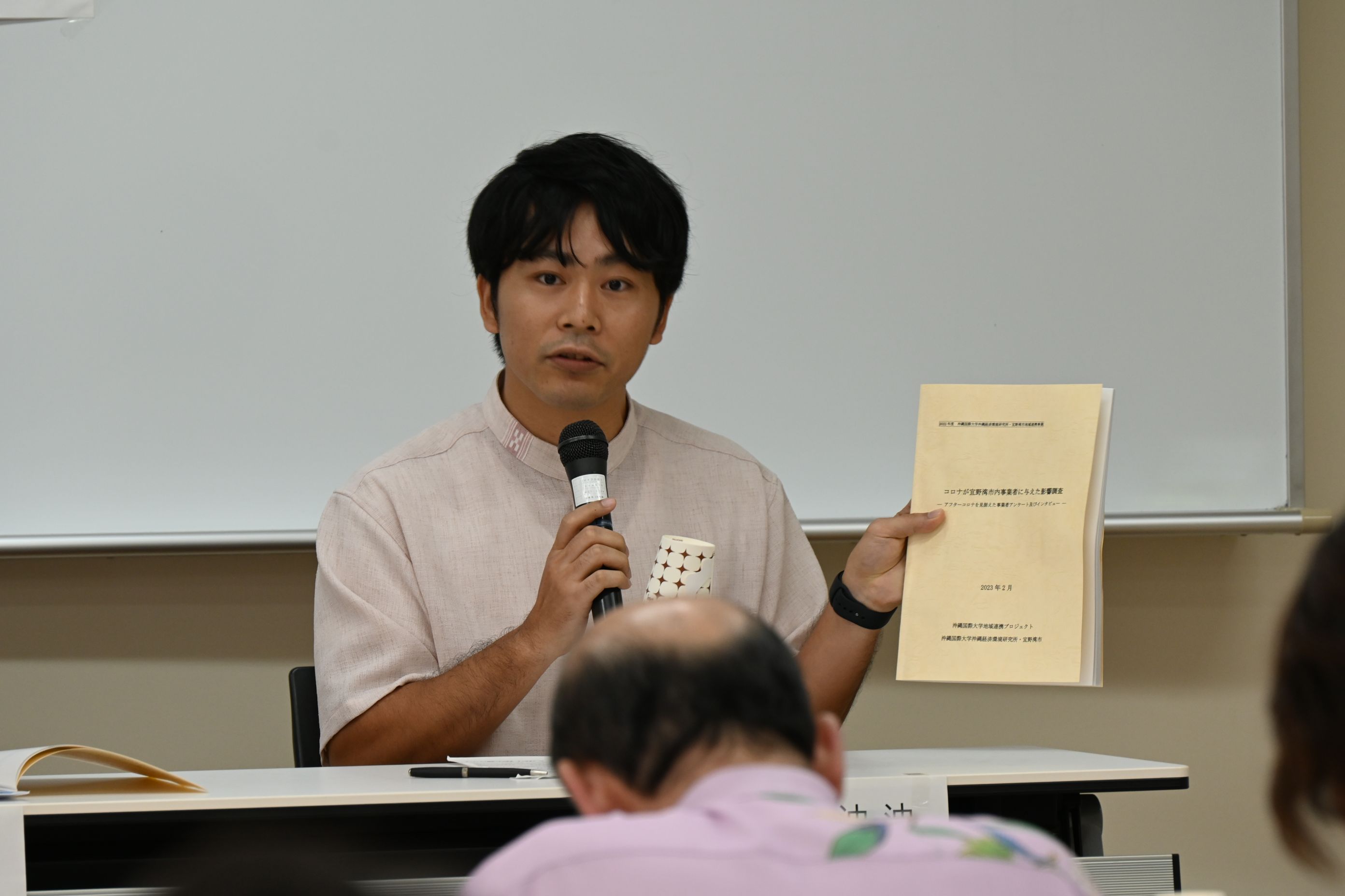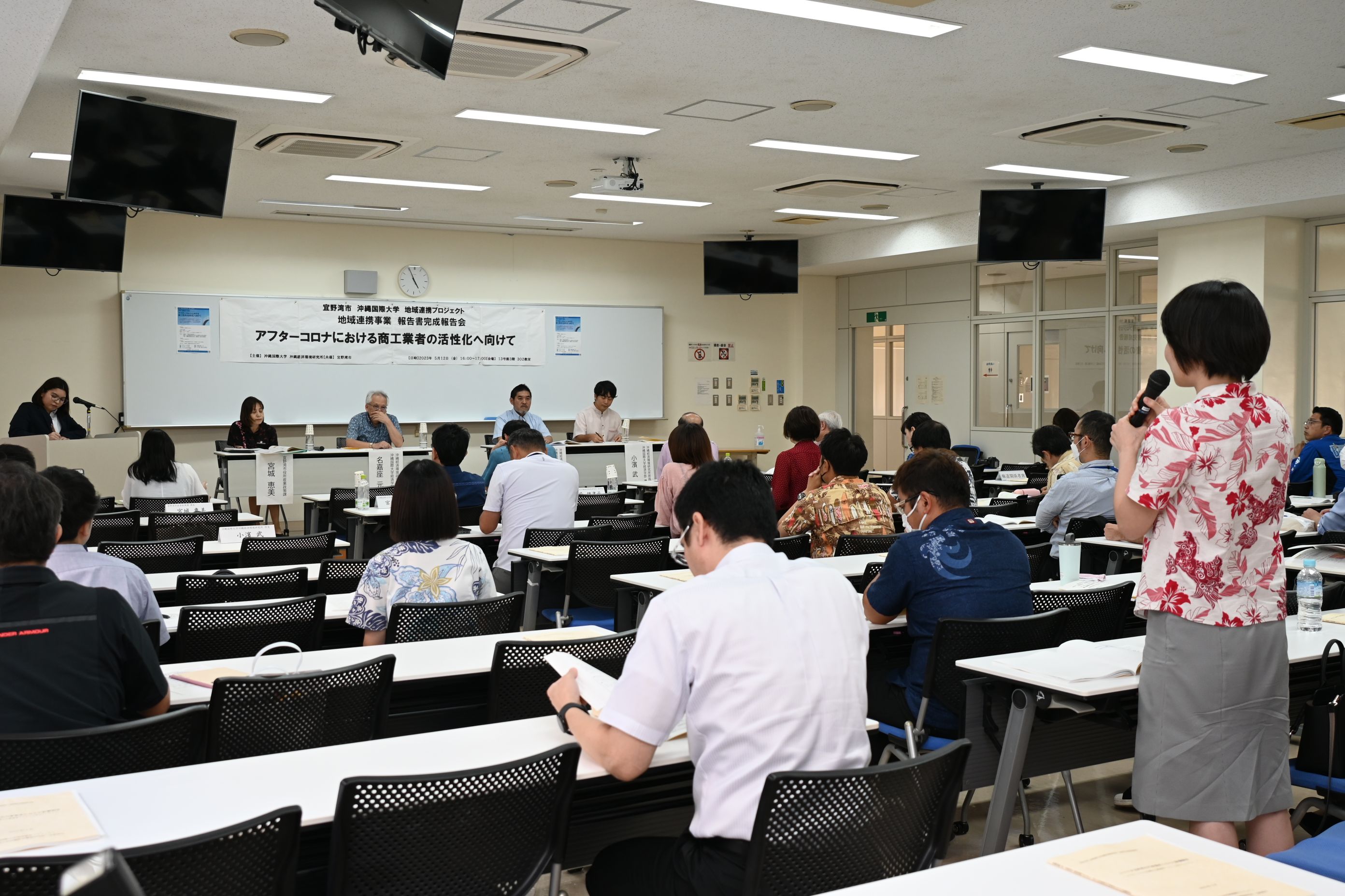 沖縄経済環境研究所では2023年5月12日(金)に「沖縄経済環境研究所 地域連携事業 報告書完成報告会 宜野湾市、沖縄国際大学の地域連携プロジェクト―アフターコロナにおける商工業者の活性化へ向けて―」を開催いたしました。
