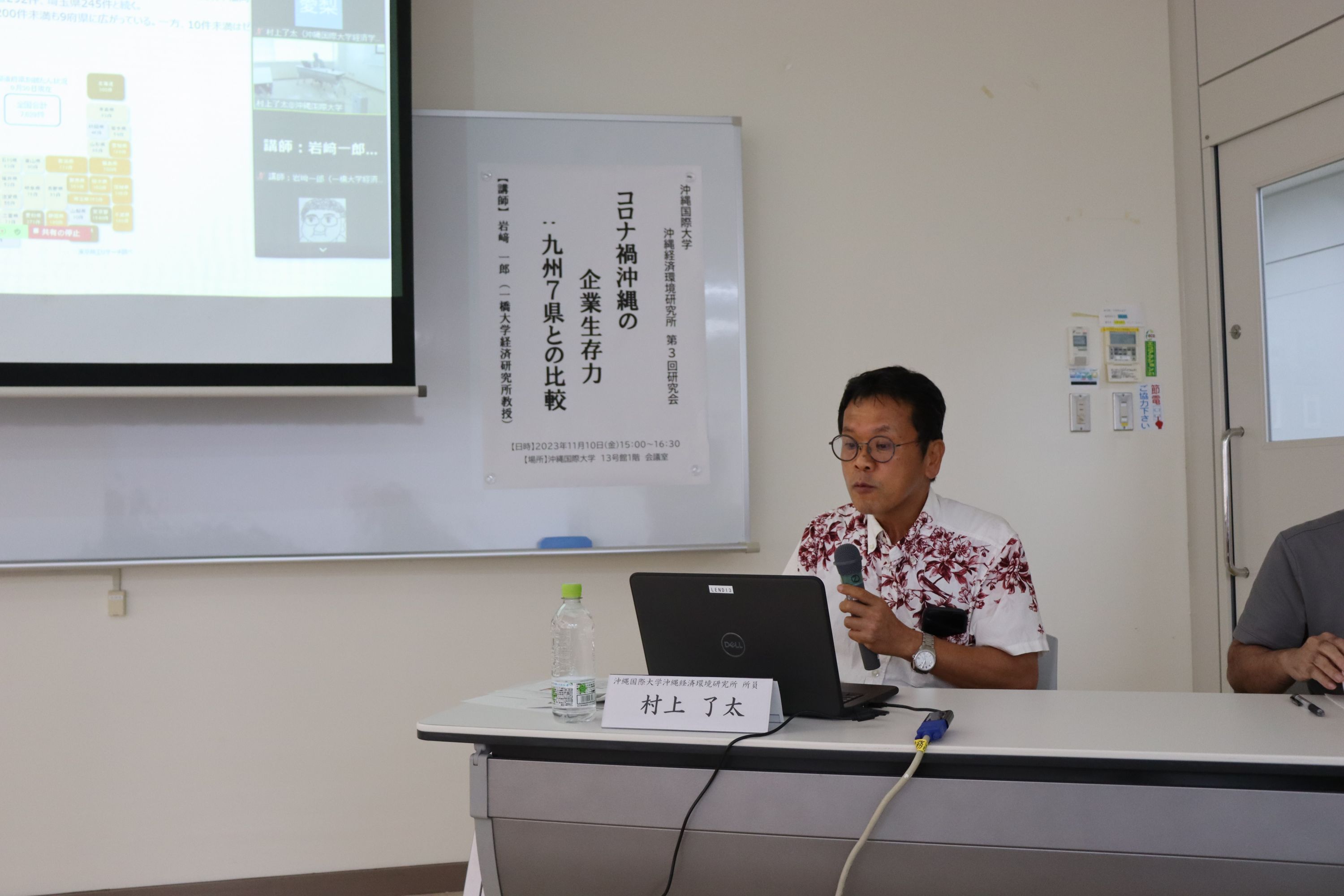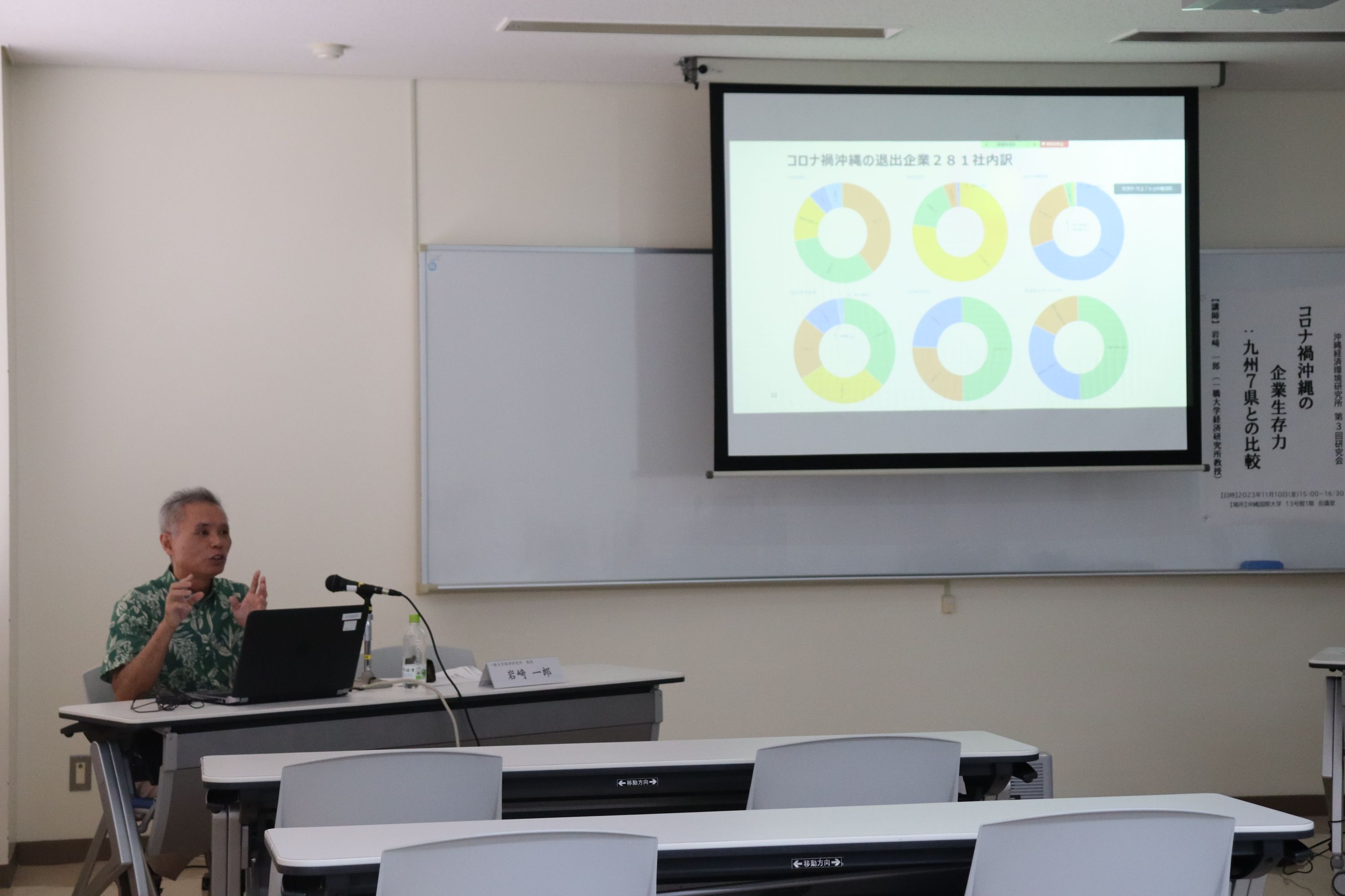 沖縄経済環境研究所では2023年11月10日(金)に、岩﨑一郎先生(一橋大学経済研究所教授)をお招きし、沖縄経済環境研究所第3回研究会「コロナ禍沖縄の企業生存力:九州7県との比較」を開催いたしました。