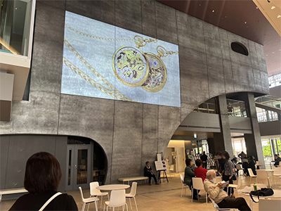 共同プロジェクトでは、劇場の活性化及び年間を通していつでも誰もがアート作品を鑑賞できる空間の創出を目的として、ロビーに設置された340インチ(高さ4.2m、幅7.4m)の大型スクリーンにて完成度の高いCG映像作品を上映しています。