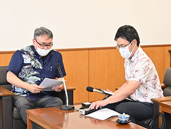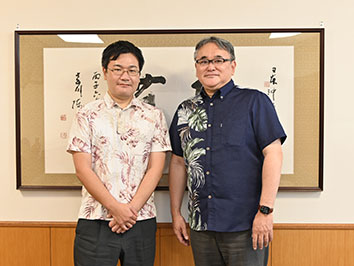 インタビュアーは、ラジオ沖縄の小橋川響アナウンサー(本学日本文化学科卒業生)です。