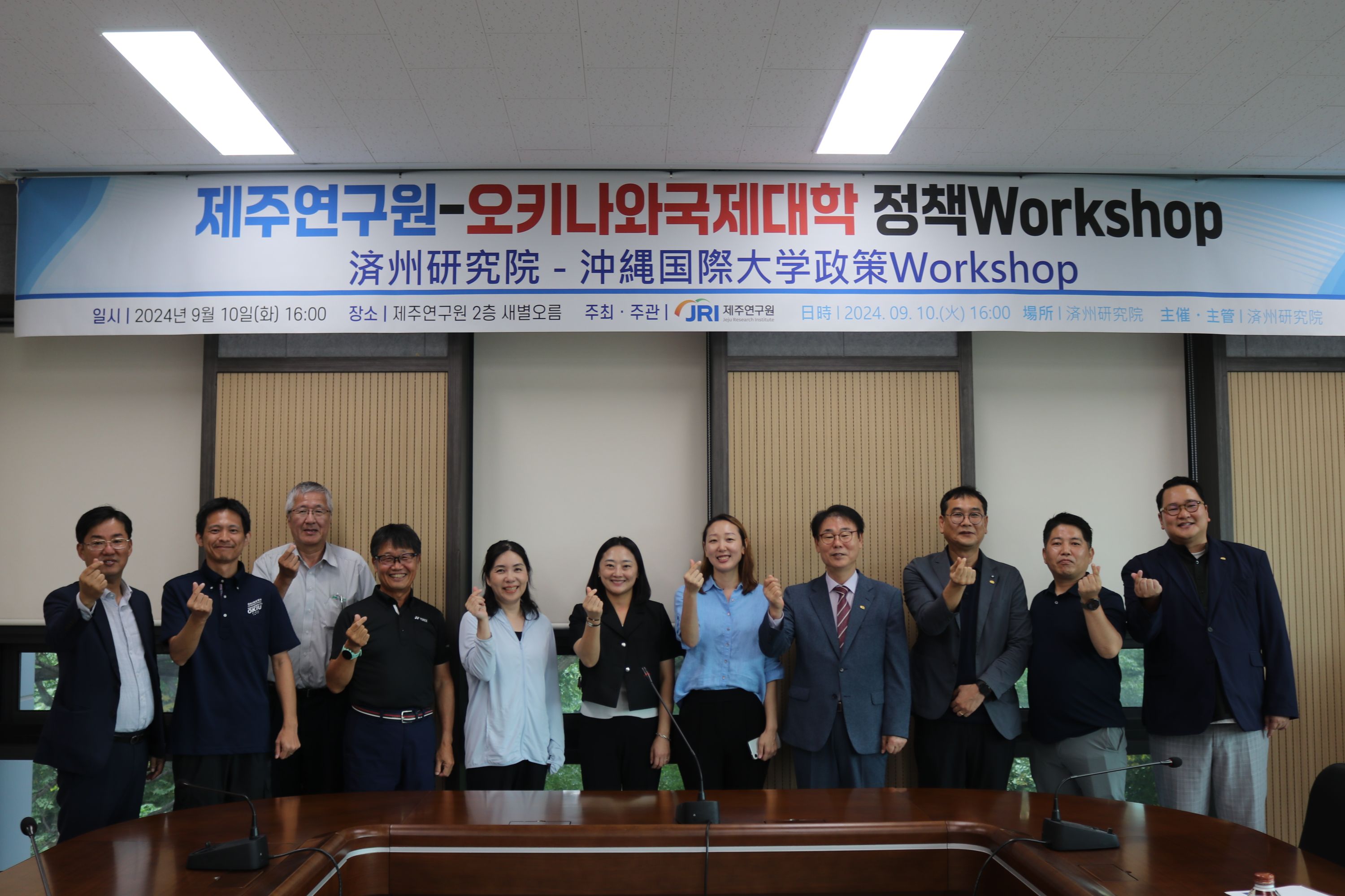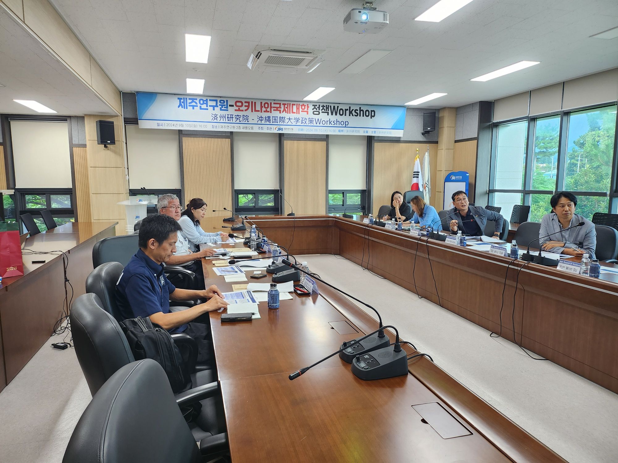 済州研究院ではワークショップという形で参加した沖国大の所員と済州研究院の研究者といろいろ情報や意見交換を行いました。済州研究院は済州島の地域発展及び地方行政と関連する制度改善等様々な課題に対して専門的・体系的な研究・調査・分析を通して地域の均衡開発と地域発展に寄与することを目的する済州島の機関であります。