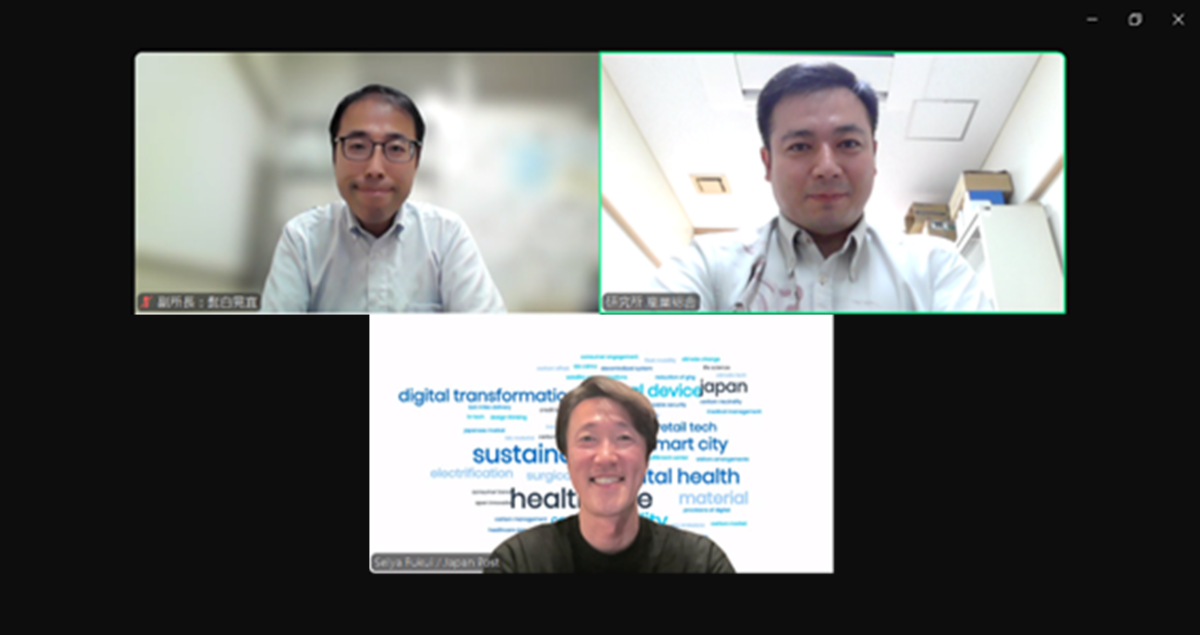 ■副所長:髭白晃宜(左上) ■講師: 福井 誠也(中央) ■司会:上原彰公(右上)