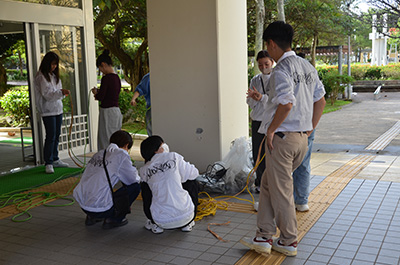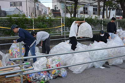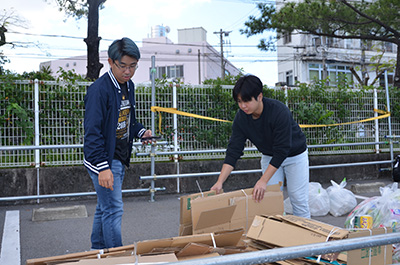 大学祭の翌日には、沖国大祭実行委員と学生環境委員会のメンバーが中心になって、ゴミの分別や後片付けを行いました。