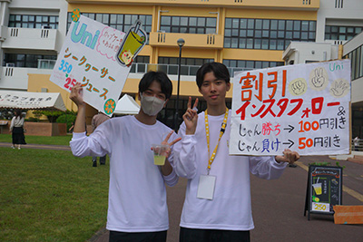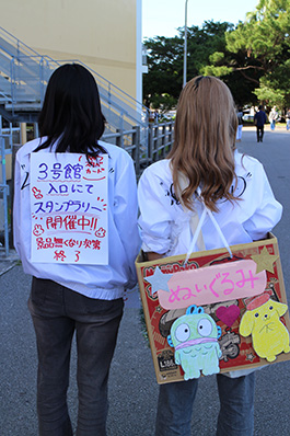 「大学最後の思い出を作りたい」「来場者に笑顔を届けたい」といった思いを胸に、沖国大祭実行委員を中心に、学生ひとりひとりが日頃の課外活動成果を作品展示等で披露し、模擬店の開催や野外ステージの出演も行いました。