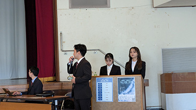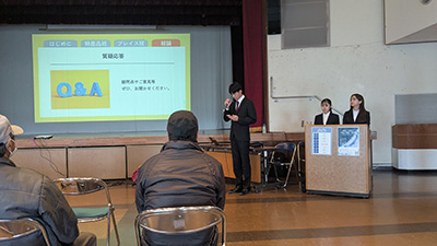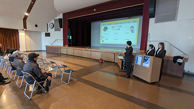 その後、国内外の活性化事例を参考に独自のアイディアを盛り込んだ解決策をゼミで話し合い、その内容を発表するために、小原ゼミ主催で「今帰仁村地域活性化調査発表会」を2025年1月12日(日)に今帰仁村コミュニティーセンターで開催しました。発表会では地域住民にお越しいただき、今帰仁村商工会事務局長様からは「今後の今帰仁村の地域活性化に向けて参考になった」とのお言葉を頂戴し、発表会は成功裏に終了しました。