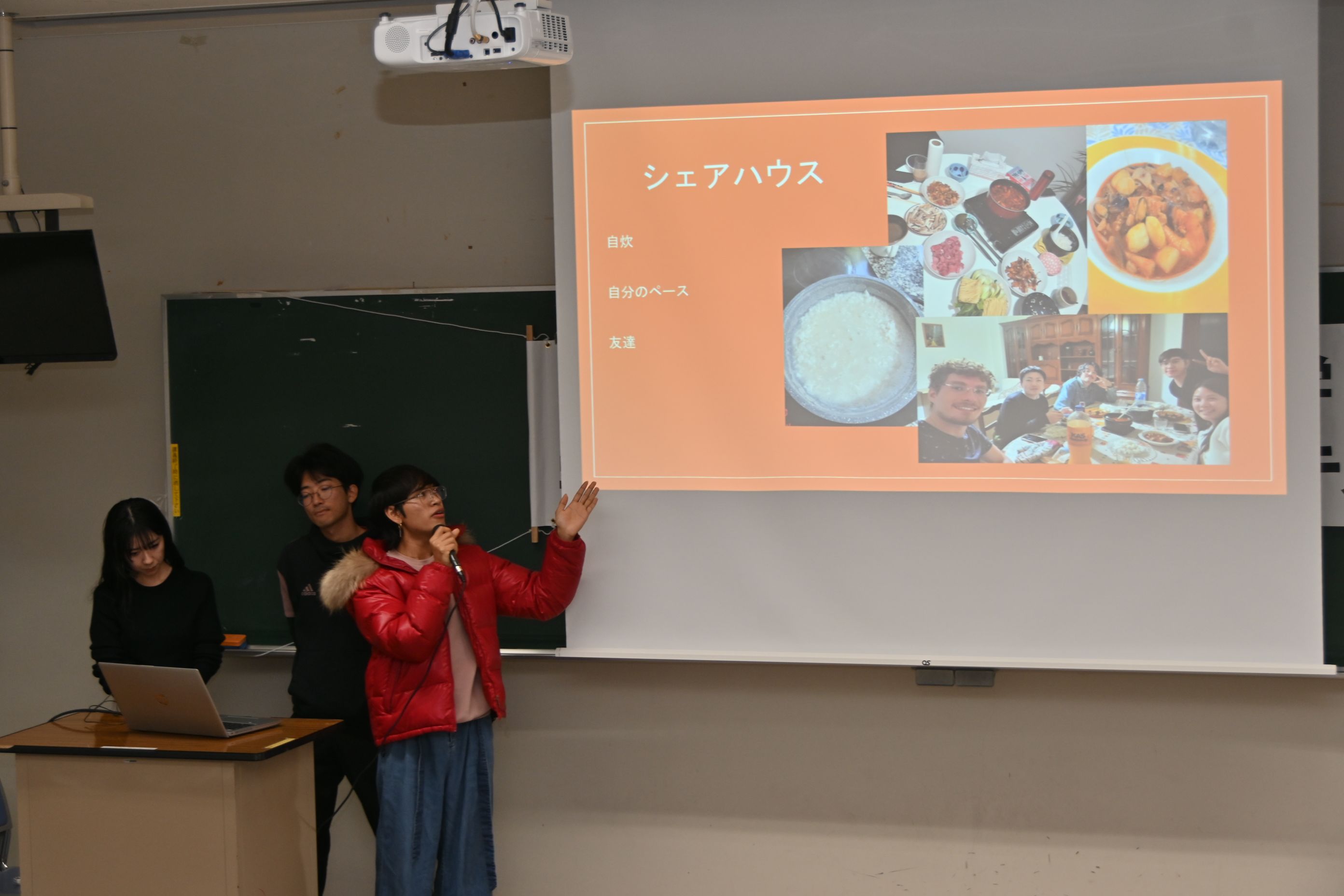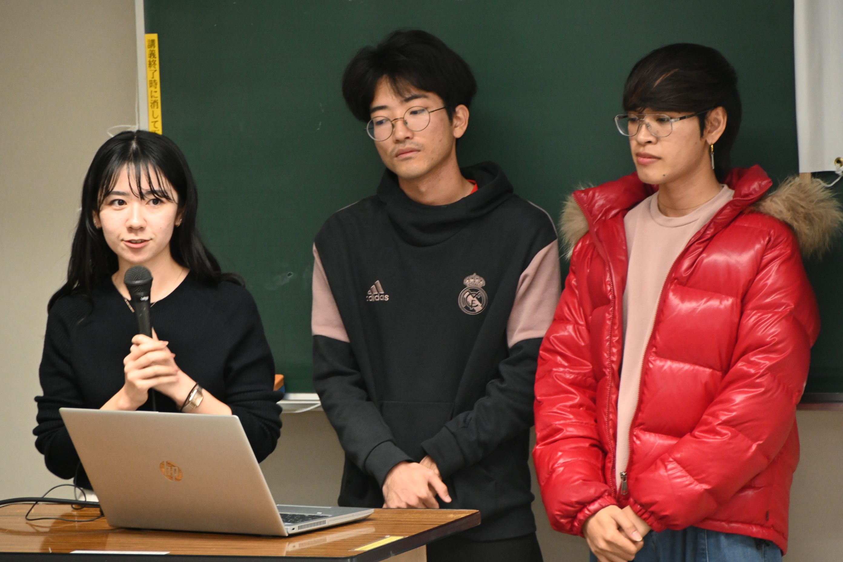 すべての発表が終了し審査を行っている間、スペイン国外協定校レオン大学より帰国した3名(新垣日菜さん・赤嶺響さん・イ ゲデ オクタ アルタ タルナさん)は、自身の留学体験についてプレゼンテーションを行い、その興味深い内容に参加者全員が聞き入っている様子でした。