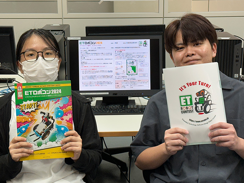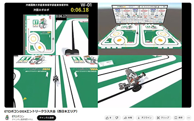 2024年10月20日にETロボコン2024エントリークラス大会がオンラインで行われました。産業情報学科の学生で結成した「沖国ロボロボ」がエントリーし、参加56チーム中、総合4位になりました。これまでの最高成績は沖縄地区総合3位(プライマリークラス)でしたが、今回はエントリークラスながら全国規模で総合4位という素晴らしい結果を収めました。