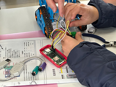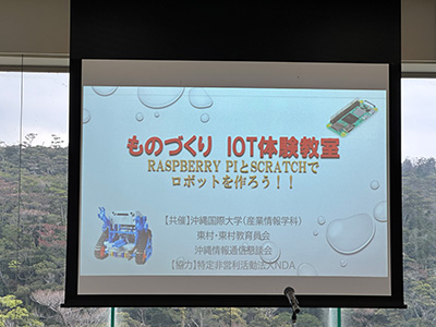 本学と東村の包括連携協力に基づく第1弾の取り組みとして「ものづくり教室「Raspberry Pi(ラズベリーパイ)とScratch(スクラッチ)でロボットを動かそう!!」を開催しました。東村内の小中学生10名が参加し、午前中はロボットの組み立て、午後はプログラミングにチャレンジしました。ロボットを組み立てる作業に少し苦戦している様子も見られましたが、最終的には全員が無事に完成させることができました。続いて行ったプログラミングでは、機材トラブルなどもあり、スムーズに進まない場面もありました。それでも、参加者は試行錯誤しながら取り組み、最後にはしっかりとロボットを動かすことに成功しました。
