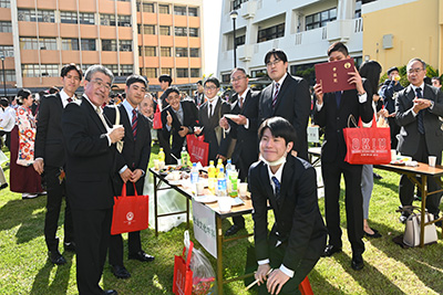 また、コロナ禍によって中止していた校友会主催の園遊会が数年ぶりに復活。中庭で軽食を取りながら、これまで一緒に頑張ってきた仲間や恩師、家族との談笑に花を咲かせていました。