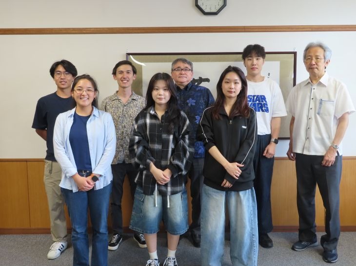 4月21日、令和7年度前期より受入の国外協定校留学生2名及び県費留学生4名が、鵜池国際交流促進室長とともに学長表敬訪問を行いました。