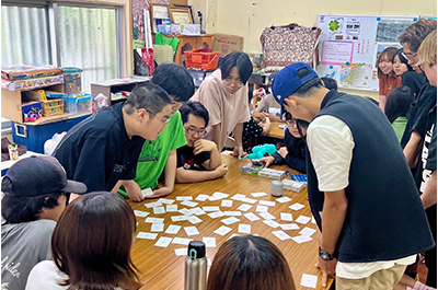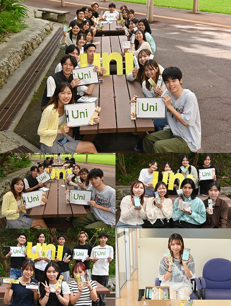 本学学生サークル団体の「Uni」(ユニ)は、「何かしたいをカタチに」をモットーに2022年に活動を開始し、県内の学修支援や自治会ボランティア、インスタでの地元沖縄の魅力について発信するなど、学生主体で企画運営を行っているサークルです。