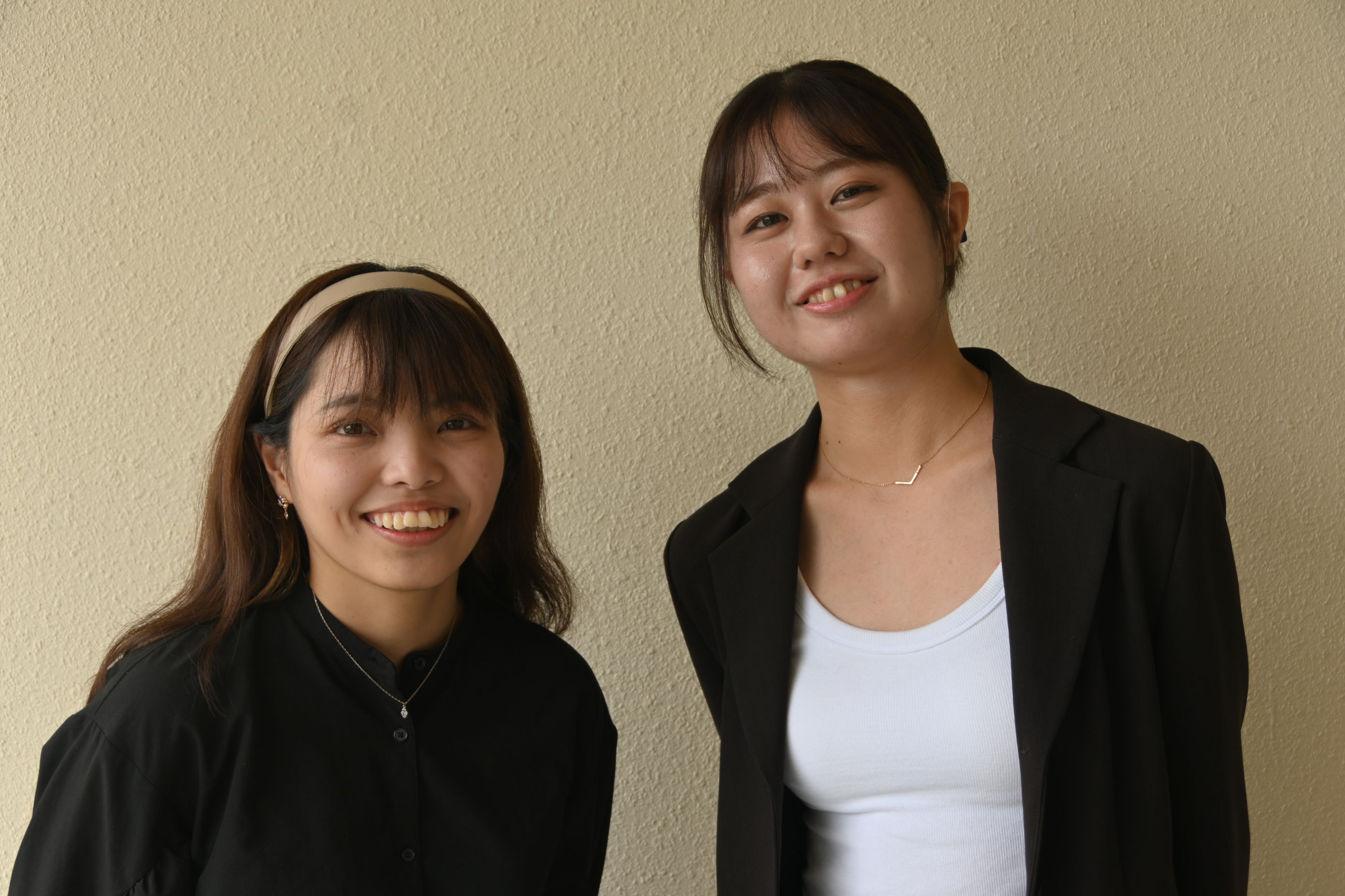 屋宜 あかりさん(人間福祉学科 社会福祉専攻2年次)、来間 有夏さん(人間福祉学科 社会福祉専攻2年次)