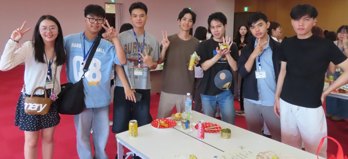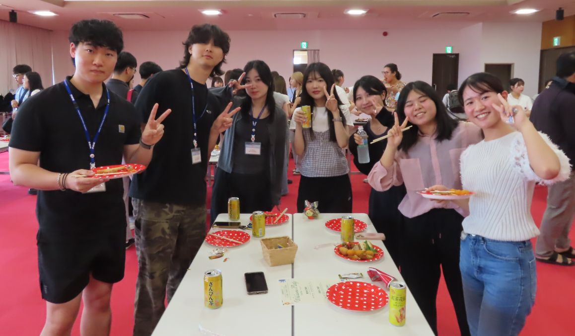 安里 肇 学長の激励のお言葉を頂き始まったWelcome Partyでは、本学で学ぶ多くの学生や留学生が参加し、楽しみながら国際交流が行われました。最初は緊張が見られた研修生も、徐々に打ち解けあう姿が見受けられました。
