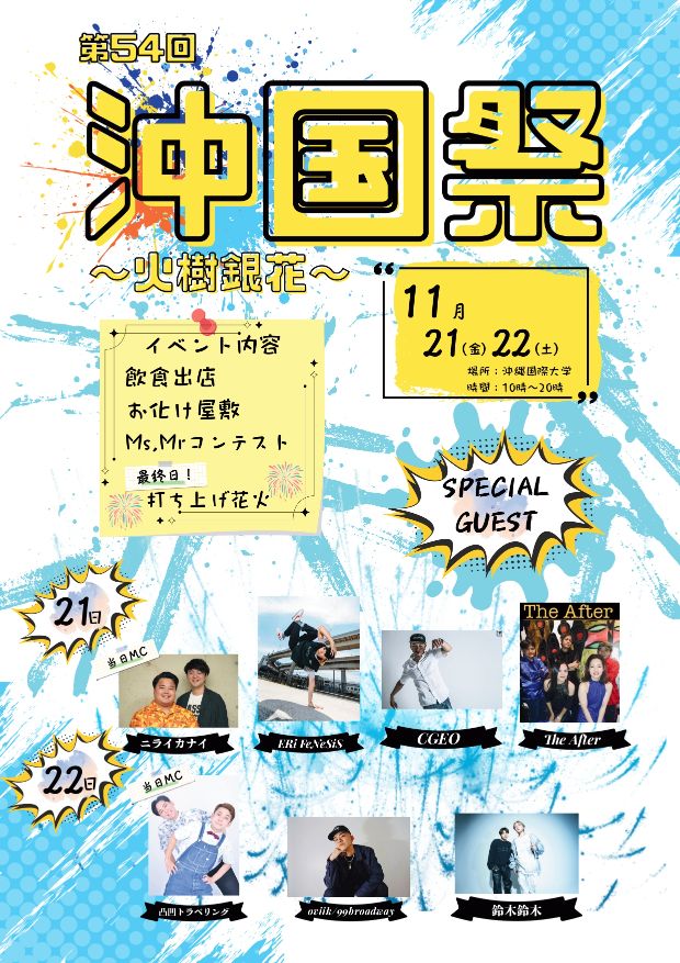 学生の熱意と創意にあふれた沖国大祭を、ぜひお楽しみください。