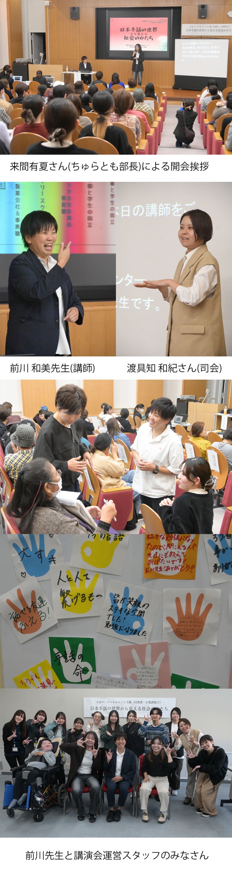 ちゅらとも部長の来間有夏さん(人間福祉学科2年次)からは、「今回の講演会は、私たちにとって初めての講演会開催となります。不慣れな点もありましたが、心を込めて準備を進めてまいりました。みなさんの参加に深くお礼を申し上げます。手話の世界を広げることが出来たら幸いです」とコメントがありました。
