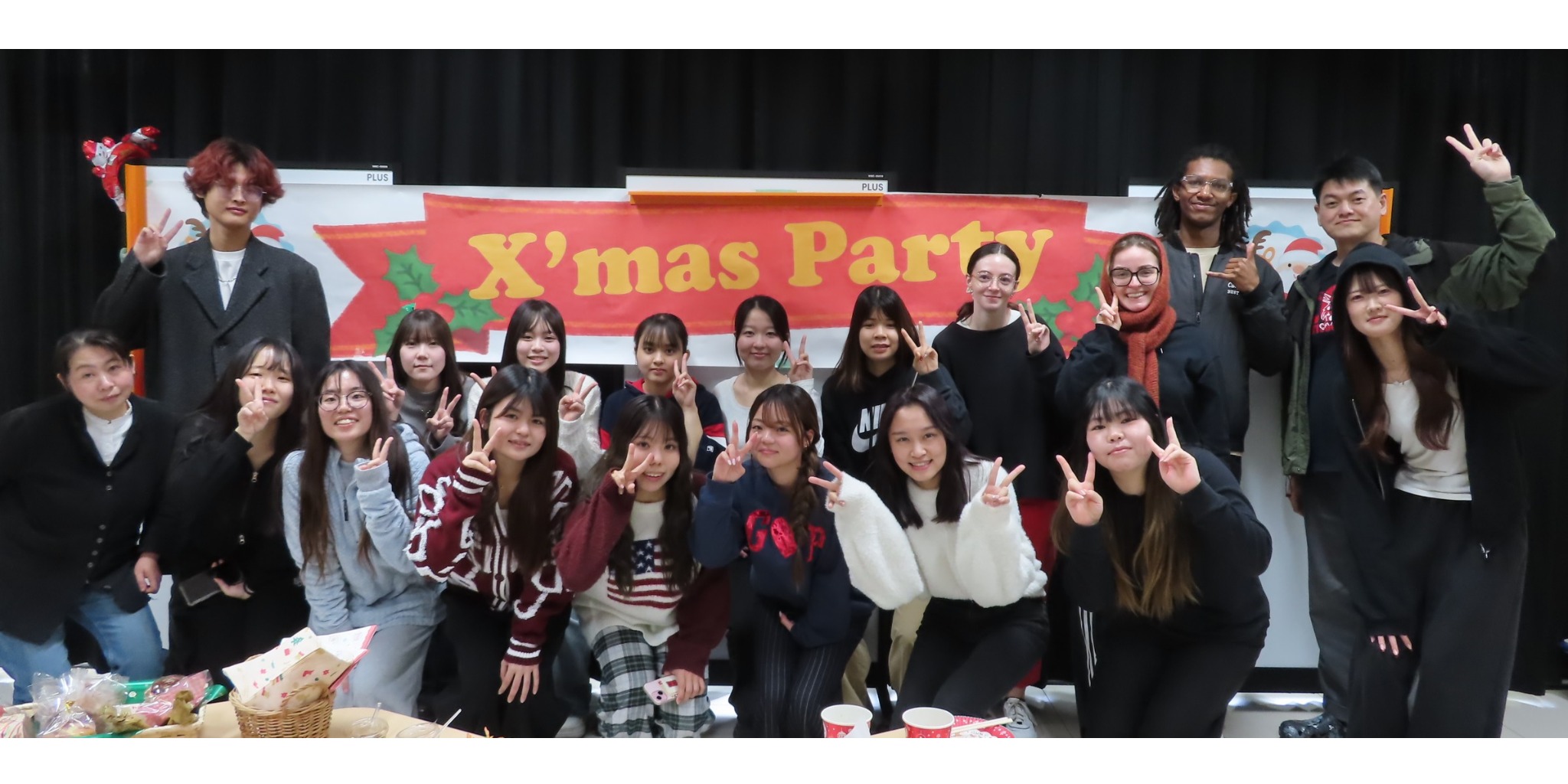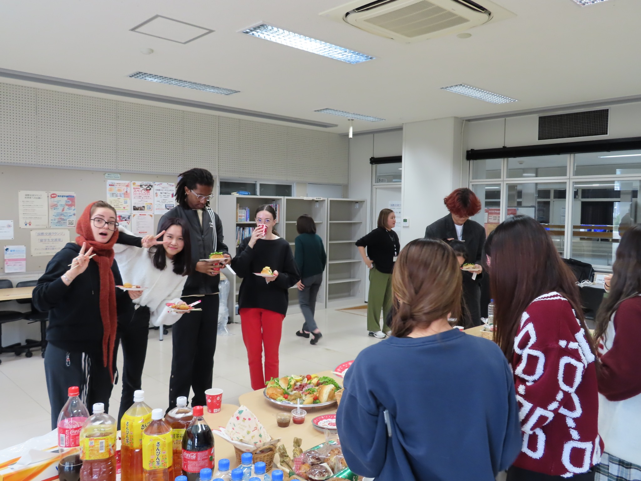 クリスマスパーティーでは、和気あいあいとした雰囲気の中、留学生と日本人学生で交流を楽しむ様子がみられました。