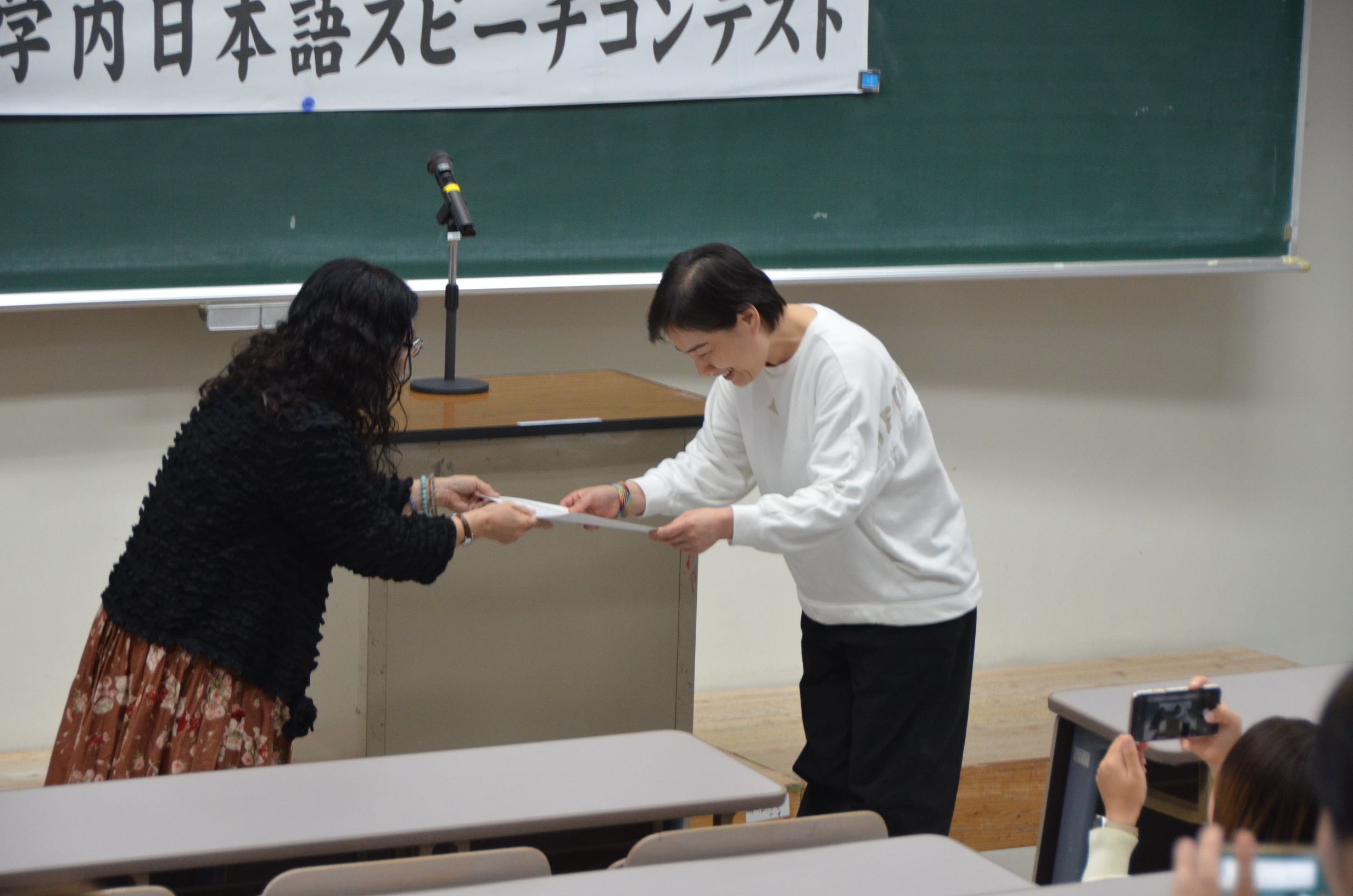 スピーチコンテストは、準備や練習やスピーチの段階では、負担感のほうが強いかもしれません。でも、それらの過程から留学生は様々な成長をしたと思います。また、スピーチをやり遂げた後の達成感も格別でしょう。今年も様々なテーマで留学生がスピーチをしました。スピーチ大会に関わることで、私も周囲の人も様々な刺激を受けました。スピーチをした留学生、運営に携わった皆さんや学生に感謝しています。お疲れ様、ありがとうございました。