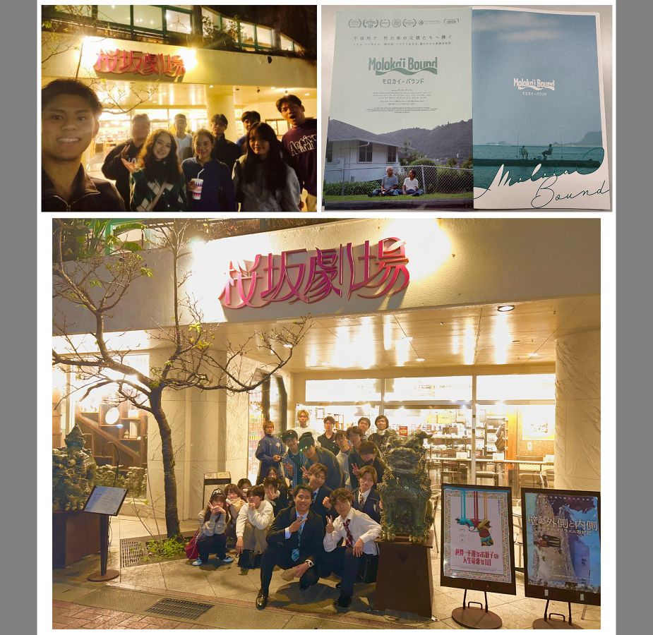 今回、タイミング良く桜坂劇場でハワイ映画「モロカイバウンド」が上映されることを知り、担当する英語Ⅱ(1年次)とグローバルメディアスタディーズ(3、4年次)の学生と鑑賞しました。