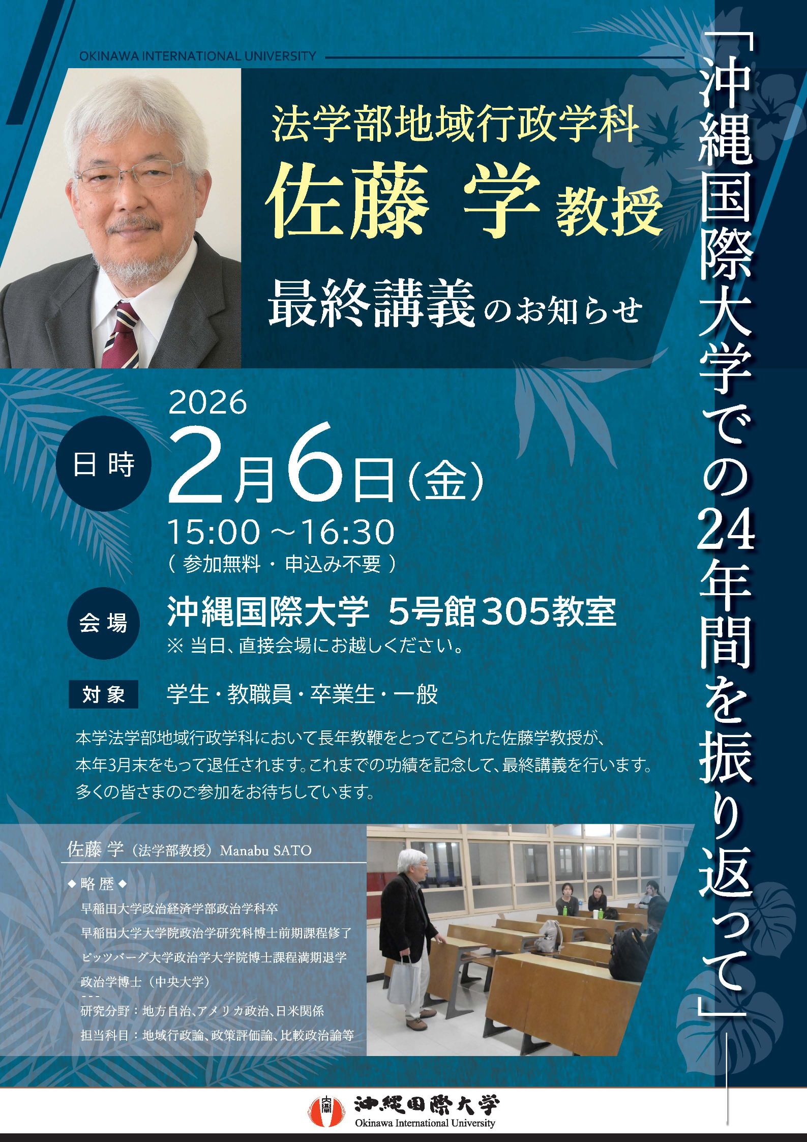【地域行政学科】佐藤学教授による最終講義の開催について(2月6日開催)