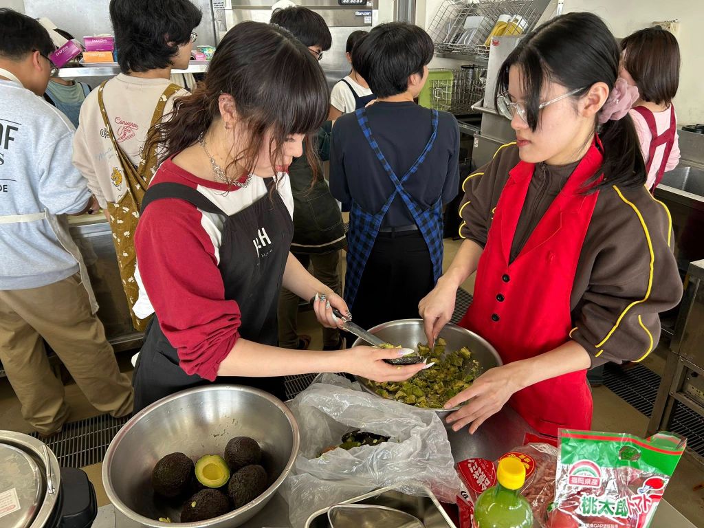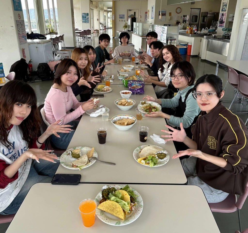 途中、スーパーマーケットへ立ち寄り全員で買い出しをし、セミナーハウス到着後に昼食のタコス作りを行いました。その後は、リスニング力や語彙力、表現力を鍛えるためのカードゲームや、英語でヒントを聞いて英単語や表現を当てるゲームなどを楽しみました。