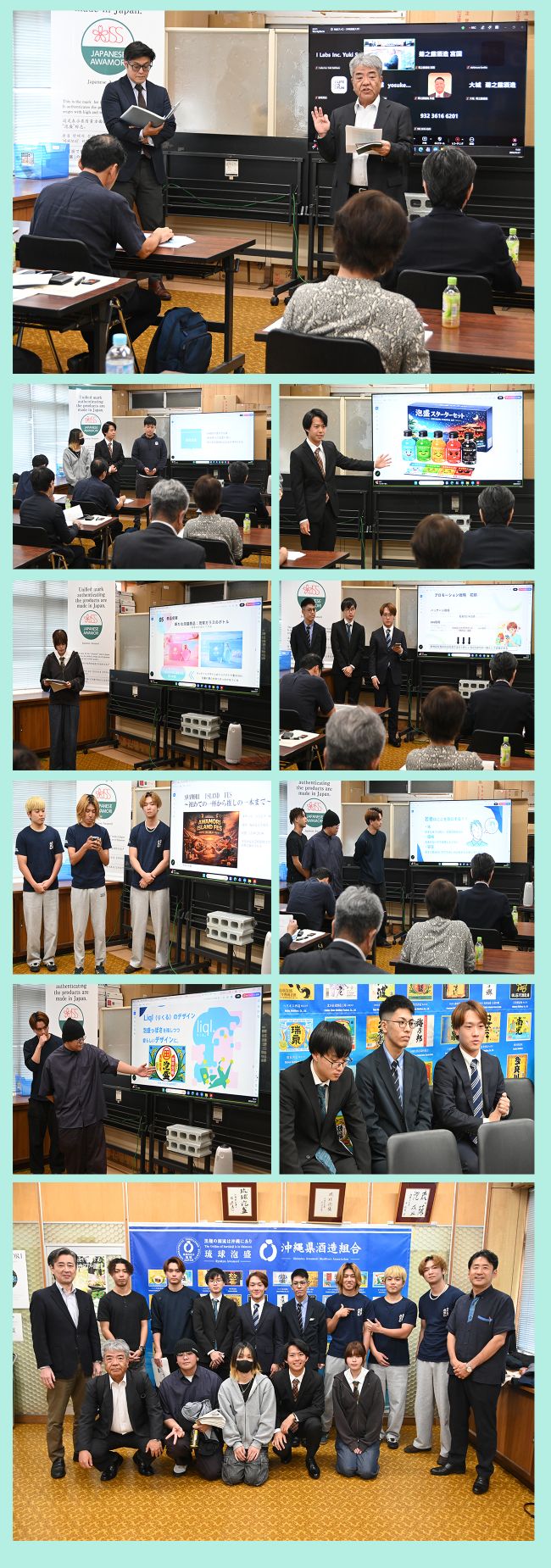 この企画発表会は、「ビジネス特別講義」(担当教員:高嶺 直)の最終プレゼンテーション(1月29日、2月5日)に参加していただいた沖縄県酒造組合の皆さまからのご要望で、実現した企画です。