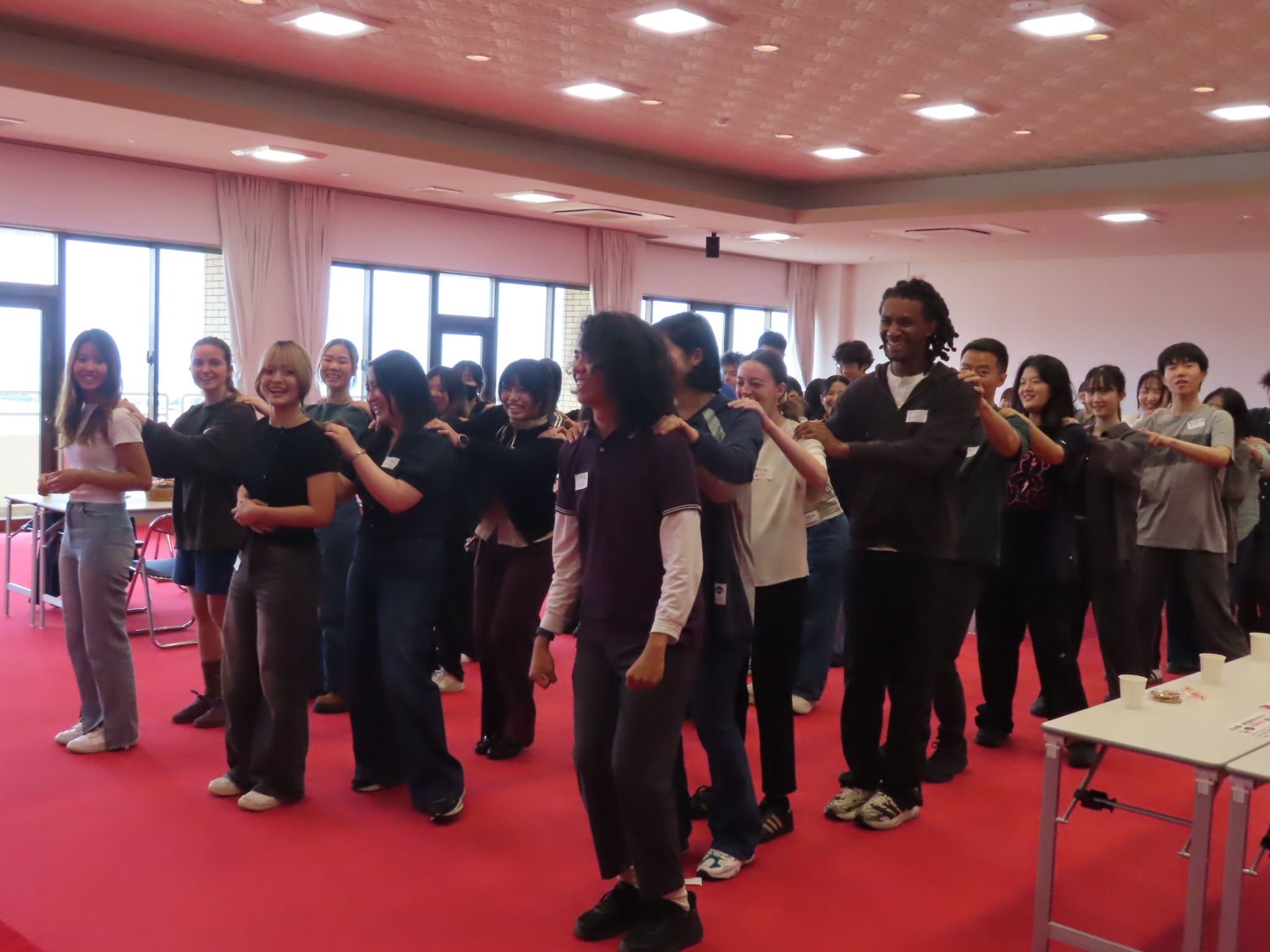 • 雑談タイム: 後半のフリートーク時間では、日本人学生と留学生が楽しく交流する姿があちらこちらで見られ、国境を越えた新しい友だち作りの場となりました。